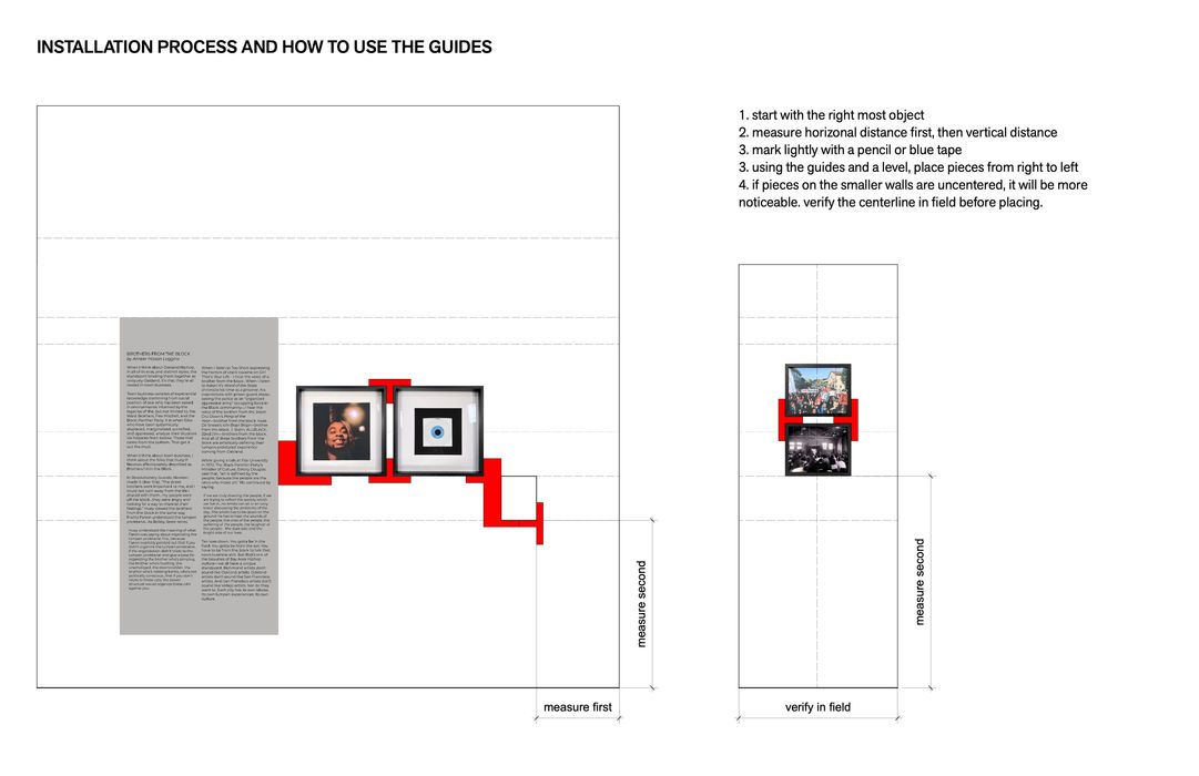 I helped co-curate the exhibit portion of the project with Abbas, Delency, and artist, Dariane Beamon and headed install for de Young. Each episode of the podcast (12 total) had various texts, photography, paintings, or found objects to go along. We had under 5 hours to install over 60 pieces. On the day of install, we discovered one of the moveable walls provided was different from what we had planned for, so we had to redesign on the spot. I created custom templates to ensure cohesive spacing and heights across all display walls.